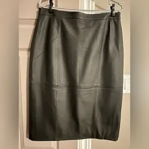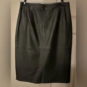**ASOS** Stunning Lined Genuine Leather Skirt, NWT, size 10, black leather exterior with silk lining, kick slit and zippered back.