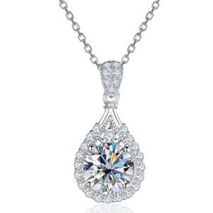 Certified 5ct. t.w. Moissanite Diamond Teardrop Halo Necklace NEW