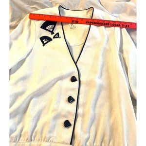 This is a gorgeous classic 80's look that would be a gorgeous business casual look, or dress it up and make a classy appearance on a yacht or even the Kentucky Derby! There are some spots on the jacket and shirt that I don't know if they will wash out or are stained, so please view the pictures closely!
