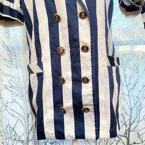 Tags: DA D.A striping stripes print pattern design motif sailor sailing boat ocean nautical theme collared buttoned breast v neck Vneck top blazer suit coat shirt sweater coverup poofy big large 36 38 40 s m 8 0