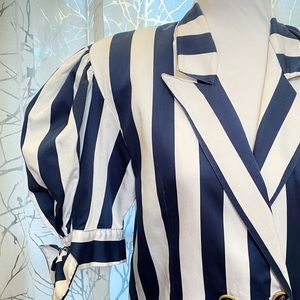 Vintage ALESSANDRINI blue white stripe nautical button ballon sleeve jacket top