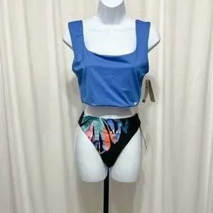 Nike Swim NWT Sz L Pacific Blue Fitted Crop Top & La Blanca Prism Palm Buttom