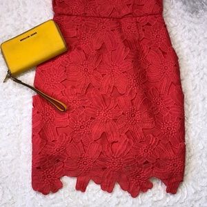 ASTR Lace Floral Sleeveless Coral Bodycon Sheath