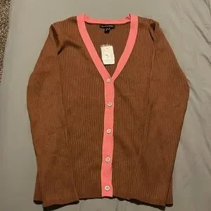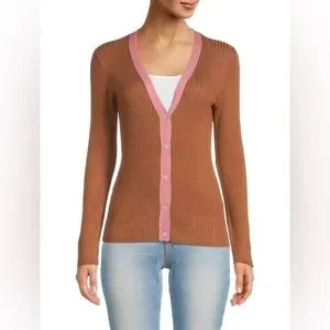$125 Saks Fifth Avenue Size M Rayon Ribbed V Neck Cardigan Sweater Top NWT