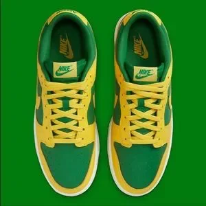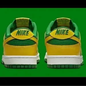 The Nike Dunk Low Retro BTTYS “Oregon” is a two-tone, yellow-and-green colorway of the retro basketball shoe that flips the color scheme of the model’s popular “Brazil” style. The “Oregon” or “Reverse Brazil” reverses the color coordination of the “Brazil” Dunk, and it doesn’t miss the mark. The shoe features Yellow Strike leather overlays and Swoosh branding on an Apple Green-colored leather base. A green “Nike” logo is embroidered on the yellow leather heel tab.