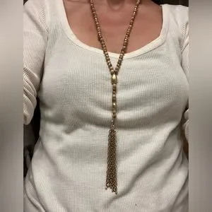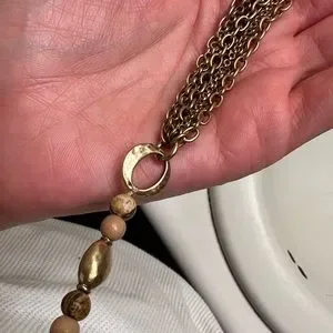 Gorgeous necklace. In brand new condition. Worn maybe 3 times. Feel free to ask any questions. Bottom of the chains hit about mid stomach. Light wood beads.