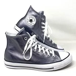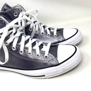 Converse Chuck Taylor High Black Metallic Leather Sneakers Women's Size A06166C