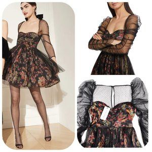 Gorgeous Cara Cara Ritchie Layered Floral & Tulle Mini dress M. Cara Cara's sheer-sleeve Ritchie minidress boasts mixed floral prints and a layered tulle Swiss-dot trim.
