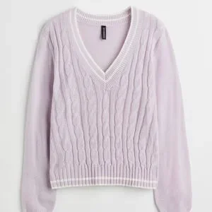 H&M Divided Light Purple V-neck Cable-knit Sweater