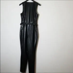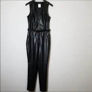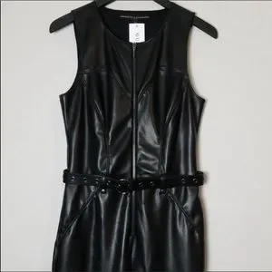 Brand new, never worn, with tags Guess Sandra faux leather zip front moto belted jumpsuit