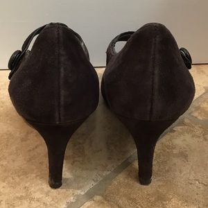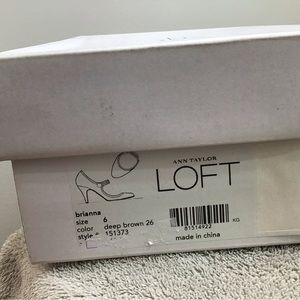 The Loft shoes are a deep chocolate suede leather. The heel is approximately 3”. These were the display pair but I’ve never worn them. There is a slight bit of wear from sliding around in the box, but they are still in great shape. (I’ll pack them better for shipping) I priced them for the imperfections. These are super cute with jeans or a business outfit. I just have way too many shoes and I need to clear them out.