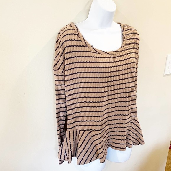 We The Free Striped Peplum Brown Top