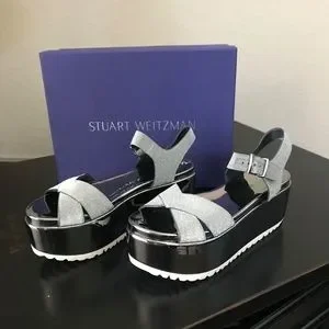Stuart Weitzman Crosspath Pewter Glitterati Platform Sandals .NWT. Size 7N