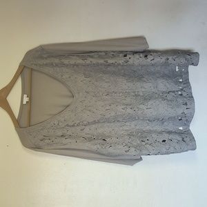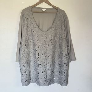 J.Jill Gray Crochet Lace Overlay 3/4 Sleeve Blouse Sz 4XL Women