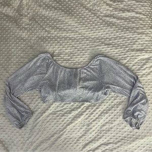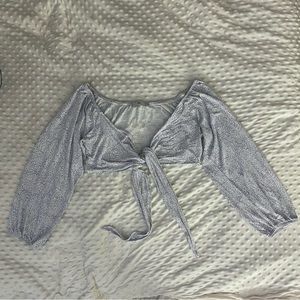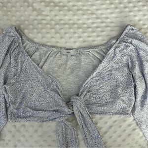 Adika Tie Front Blue and White Pattern Crop Blouse Size Small