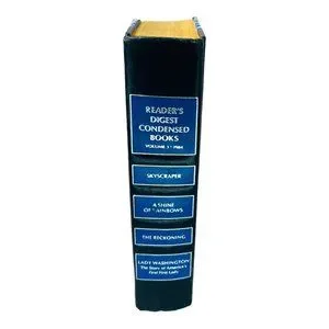 A whimsical gift, this C alphabet-shaped book is made from a readers digest condensed books, volume three 1984. It includes parts of the skyscraper, a shine of rainbows, the reckoning, and the Lady Washington the story of America’s first First Lady. It’s buckram bound with gold-foil detail on the spine.