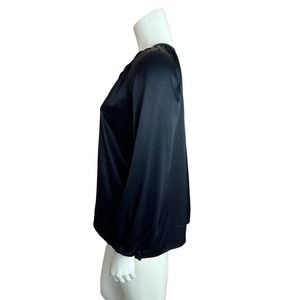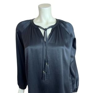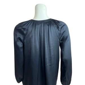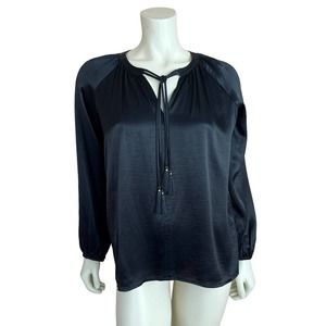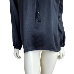 Johnny Was Calme Peasant Blouse XS Black Satin Tassel Split Neck Long Sleeve