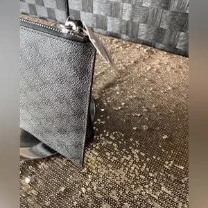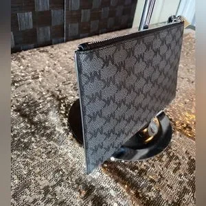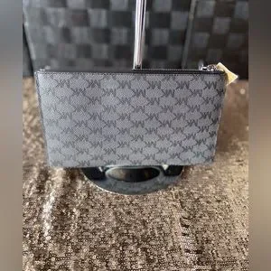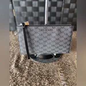 MICHAEL KORS Jet Set Item Black Gray Logo Print Zip Clutch Wristlet