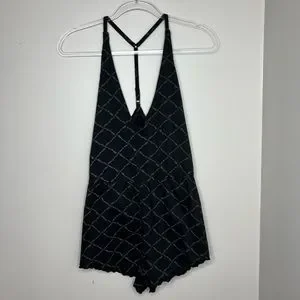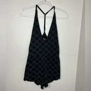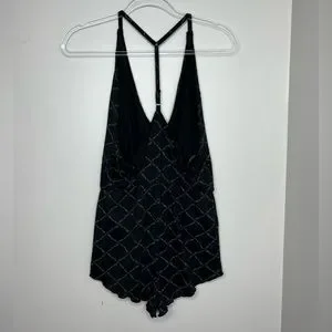 NWT - Missguided lettuce hem romper teddy. Black - size 8. Adjustable t-strap. Very cute! Low v-neck. Brand new.