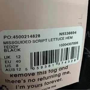 NWT - Missguided lettuce hem, low v cut romper teddy. Black - size 8. Brand new!