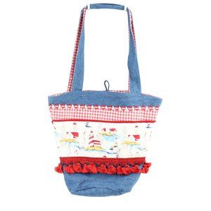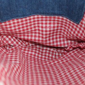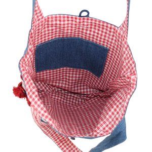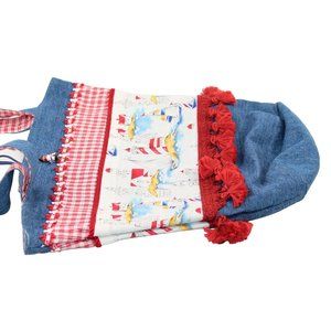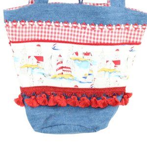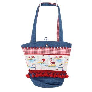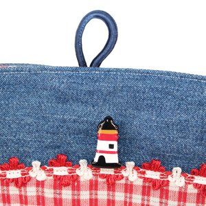 Handcrafted Handsewn Lighthouse Plaid Denim Embellished Lined Shoulder Purse Bag Tote
