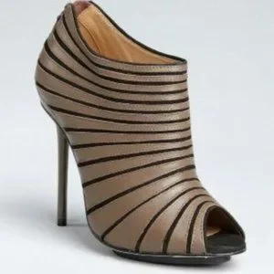 L.A.M.B. Gwen Stefani Bindi Leather Peep Toe Zip UP Ankle Boots in Brown 7.5