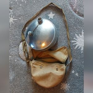 Used condition with some sachel tears near strap. Still very strongly together! Dent in rear of aluminum canteen (pictured). Works great! For display or use.