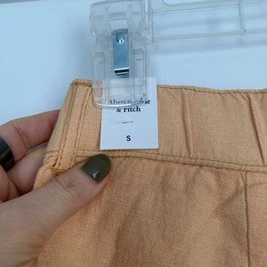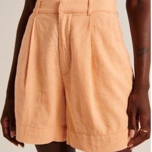 Abercrombie & Fitch Linen Blend Tailored Pleated Front Orange Shorts