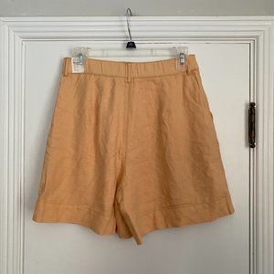 Abercrombie & Fitch Linen Blend Tailored Pleated Front Orange Shorts Size Small