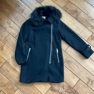Beautiful moto style wool coat for girls. Full zip, zippered pockets and detachable faux fur trim collar. Only worn a couple times.