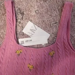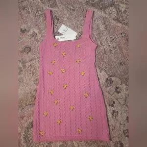 ZARA Floral Embroidery Cable Knit Mini Tank Dress