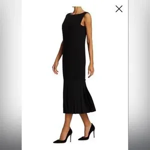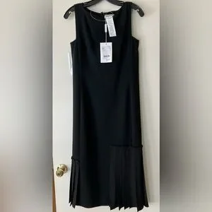 Max Mara black sleeveless boatneck pleat hem dress. 🆕
