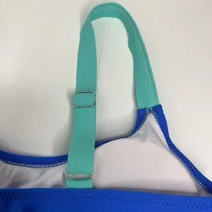 High Waisted Bikini Set Sports Color Block .The fabric of high raise bikini is made of 82% Nylon and18% Spandex. Super stretchy swimsuit, Soft removable pads in the top. Fully lined designed make the two piece bathing suit thick and no see through when wet.