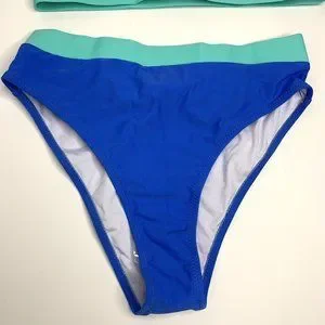 Womens High Waisted Cheeky Bikini Swimsuit Size Small Blue Teal.