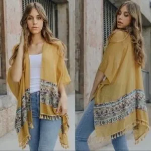 06 Boho Embroidered Tassel Open Front Kimono Cover up