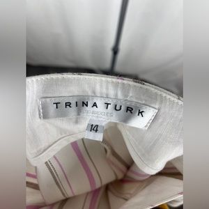 Trina Turk White Monument Pink and Brown Striped Pants Size 14 NWT