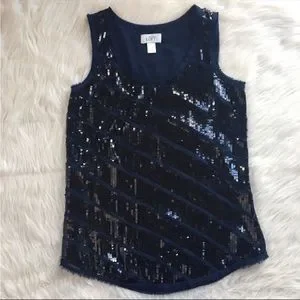 Loft sequined sleeveless blouse. Sequin sparkly top in size small. Diagonal sequin design with raw hem edging. This shirt is lined. Sleeveless blouse.