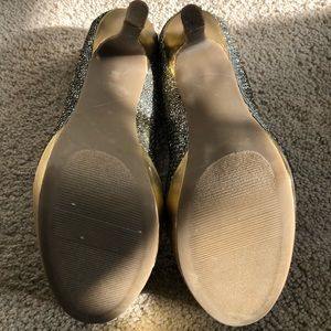 Silver Sparkly heels with gold detail. Only worn a few times, but there is some wear and tear on the heels part of the shoes. Price is negotiable 🤍 Would love for these to have a new home
