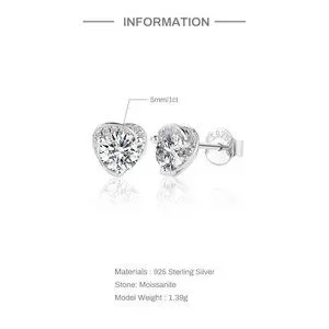 Certified 1ct. t.w. Moissanite Diamond Heart Halo Stud Earrings NEW