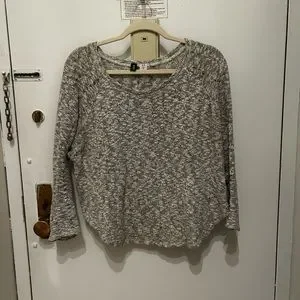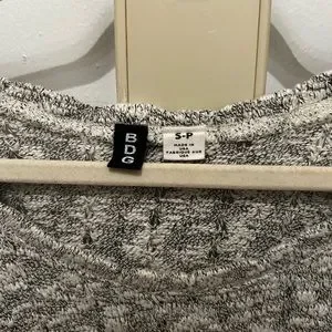 Black and white sweater from BDG in size small. Thin, 3/4 sleeves, and the hem is not uniform but cropped slightly up at the sides. Excellent condition, no flaws.