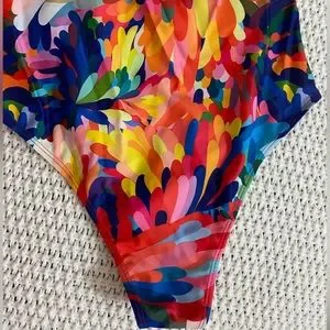 This one piece is so fun. I accidentally ordered 2 of the same of this one. I figured I would just sell the other on here. So it’s brand new, still in the bag. I really like this suit! it’s a cute print and good fit, just a bit cheeky for this mom (but you can add a syrong like I did if you’re like me).