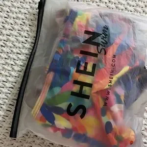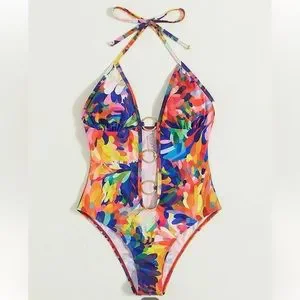 Shein multicolored deep V halter one piece swimsuit size small New in bag