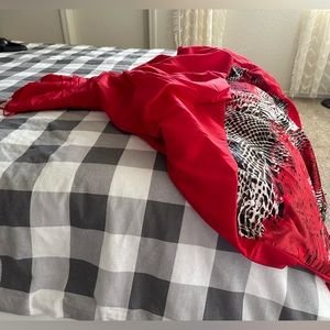 Never been worn, just bought it to design my living room, it was on mannequin during few years and then stored it in closet. Doesn’t have any smell, pet free smoke free house.