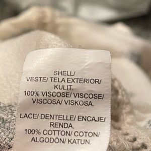 Beautiful and unique lucky brand size large women’s blouse. Features buttons that go down the back, a high neckline, and a beautiful repeating pattern. Super detailed, dainty and cute. Perfect w a pair of jeans. In perfect condition..