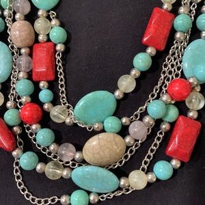 Multilayer beautiful necklace!!!Silver tone with beads and faux stone