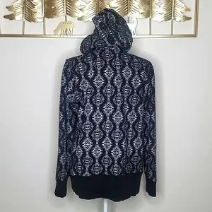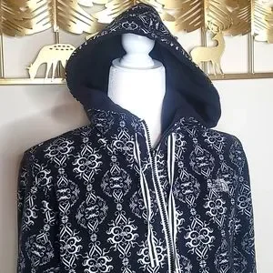 •Black & white zip up hoodie.