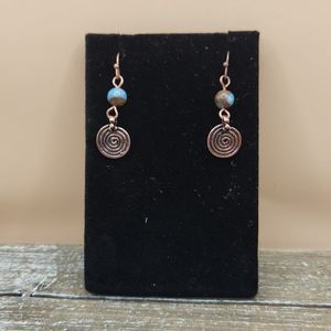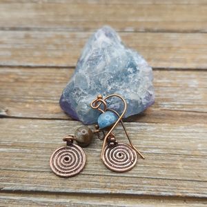 Teal Impression Jasper and Copper Spiral Drop Earrings