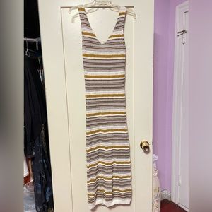House of Harlow 1960 Gold and White Striped Knit Midi Dress
