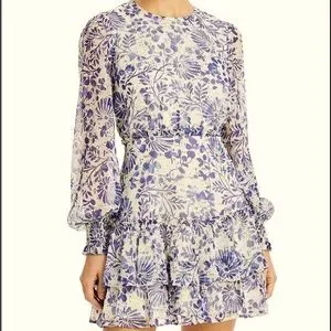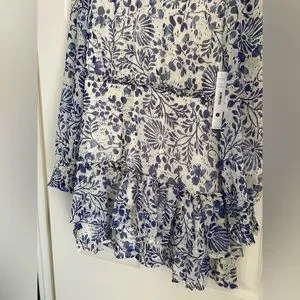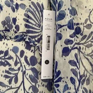 New with tags Aqua brand dress. Size large. Beautiful blue floral with long sleeves and ruffled skirt. Size large. Length is approx 34 long, pit to pit 21, and waist 17 inches flat. Smoke and pet free home.