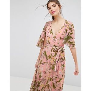 NWOT ASOS Floral Pleated Flutter Sleeve Maxi Dress Size 2